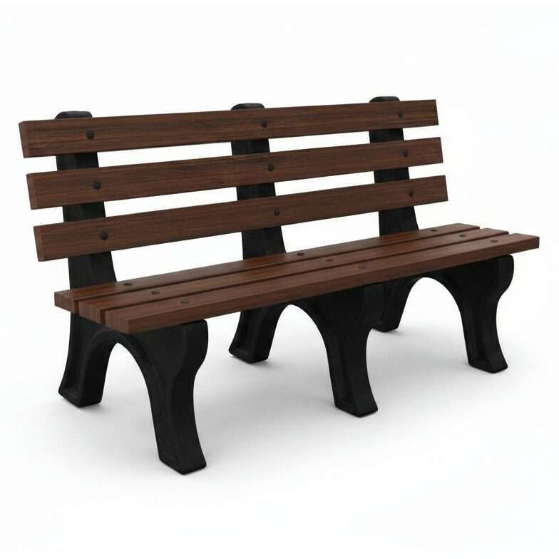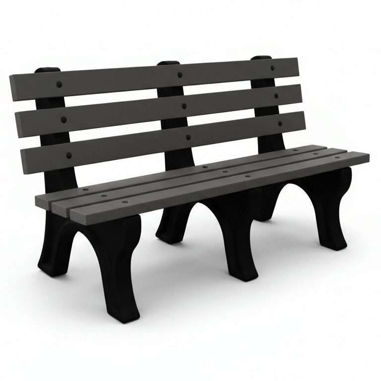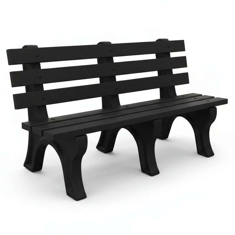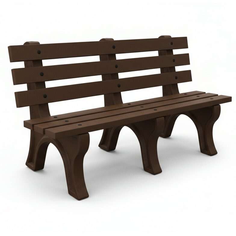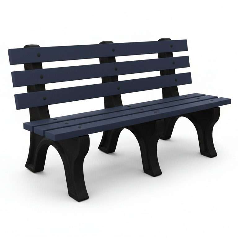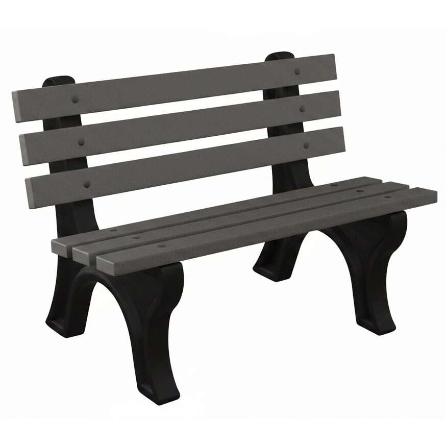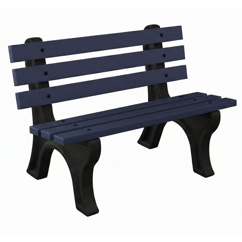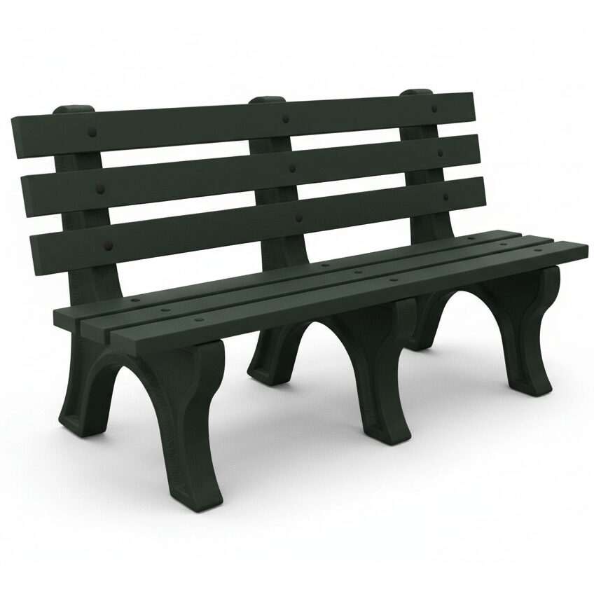 The High Back Bench is Constructed with sturdy molded legs and recycled plastic slats. Ships knock down and includes stainless steel hardware. Can be personalized with custom engraved slats.