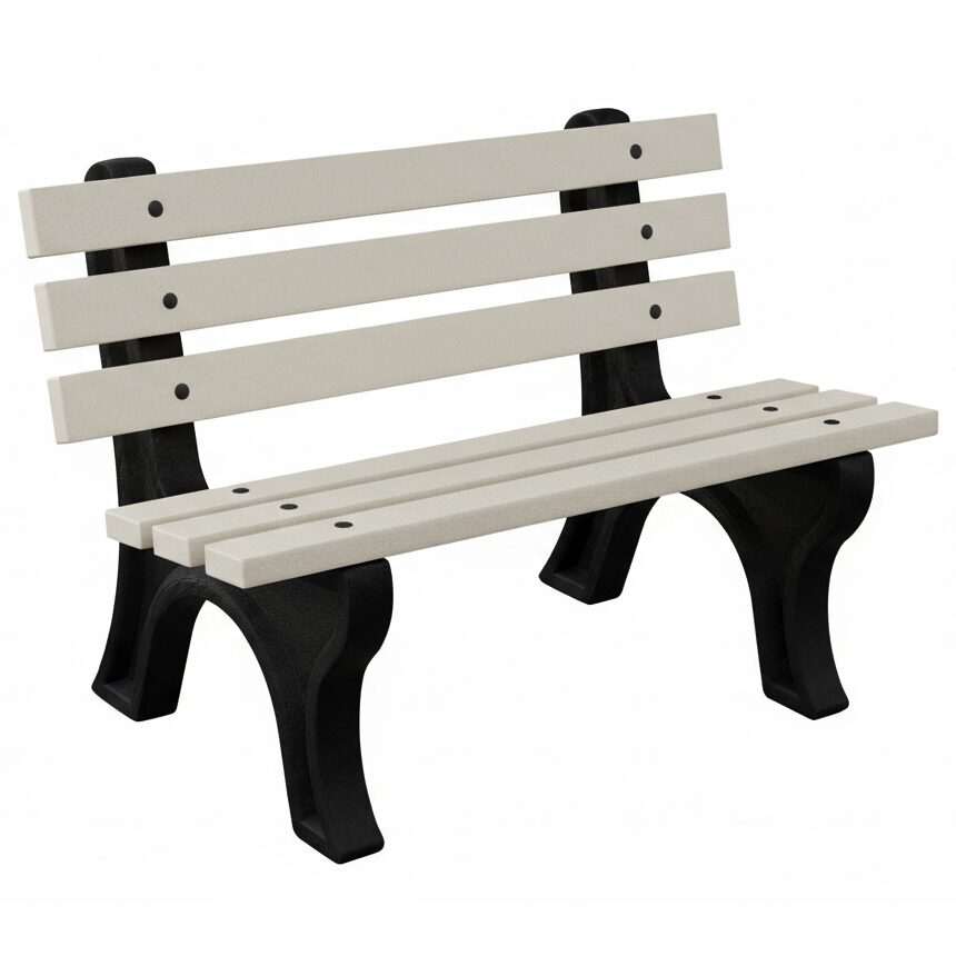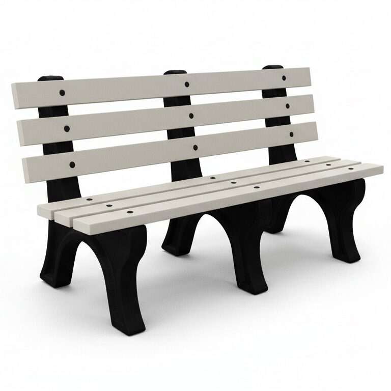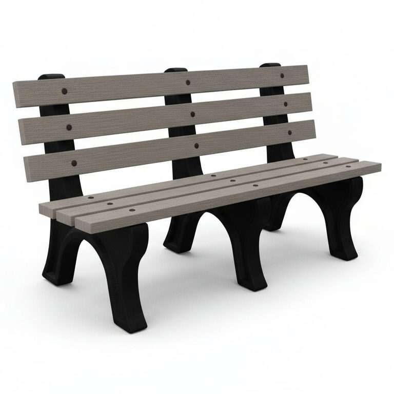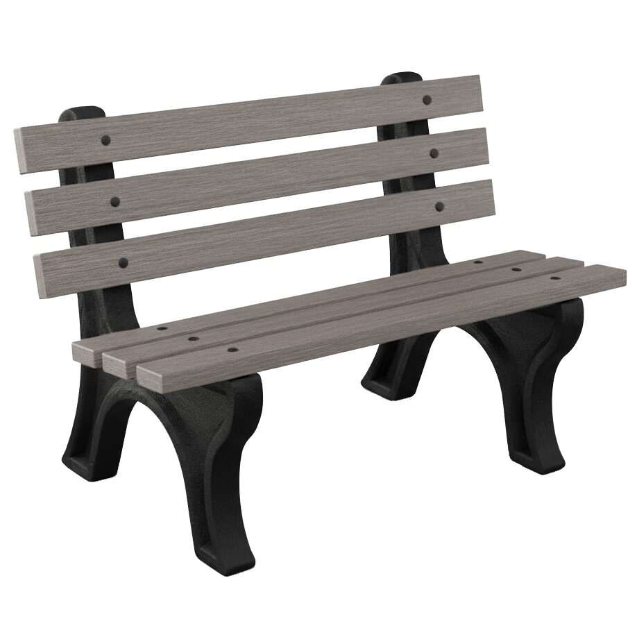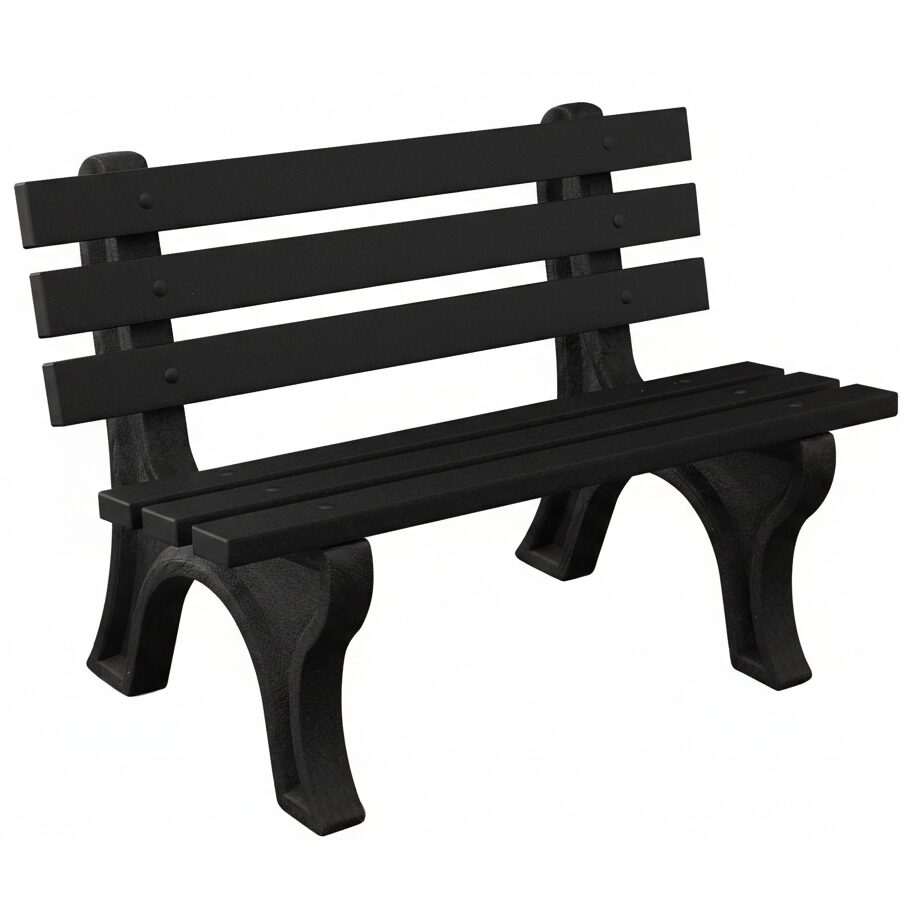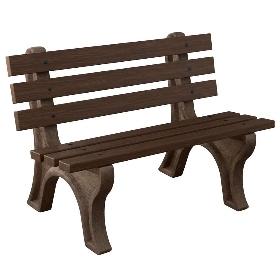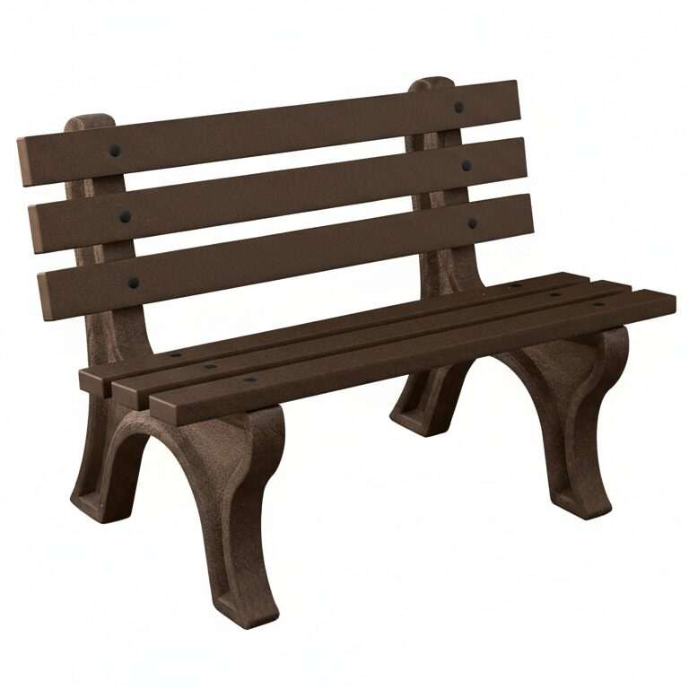 The High Back Bench is Constructed with sturdy molded legs and recycled plastic slats. Ships knock down and includes stainless steel hardware. Can be personalized with custom engraved slats.
