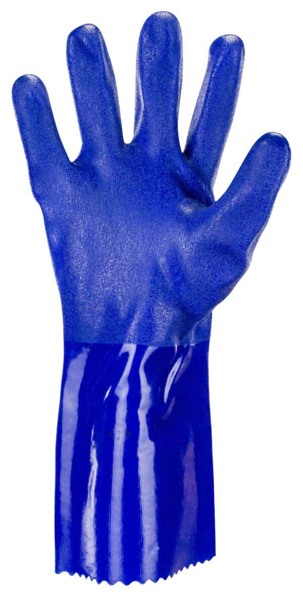 PVC gloves with interlock knit liner provide excellent protection and grip for heavy-duty work. 13″ length offers extended coverage. The rough finish improves grip in both wet and dry applications, making them ideal for chemical processing, oil refining, and handling petrochemicals.