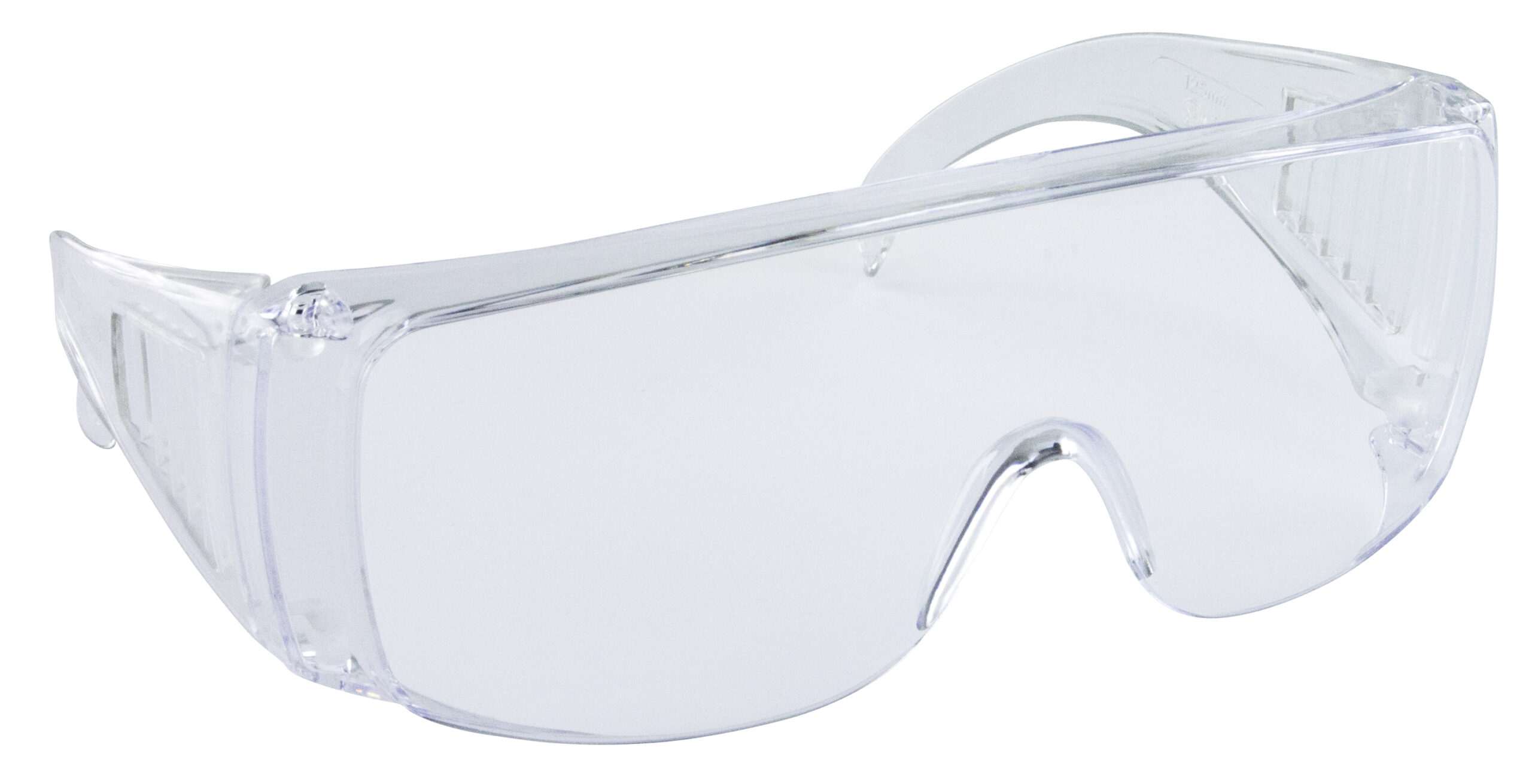 Affordable safety glasses with clear frame and clear lens, ideal for visitor specs. Fits comfortably over most prescription glasses.